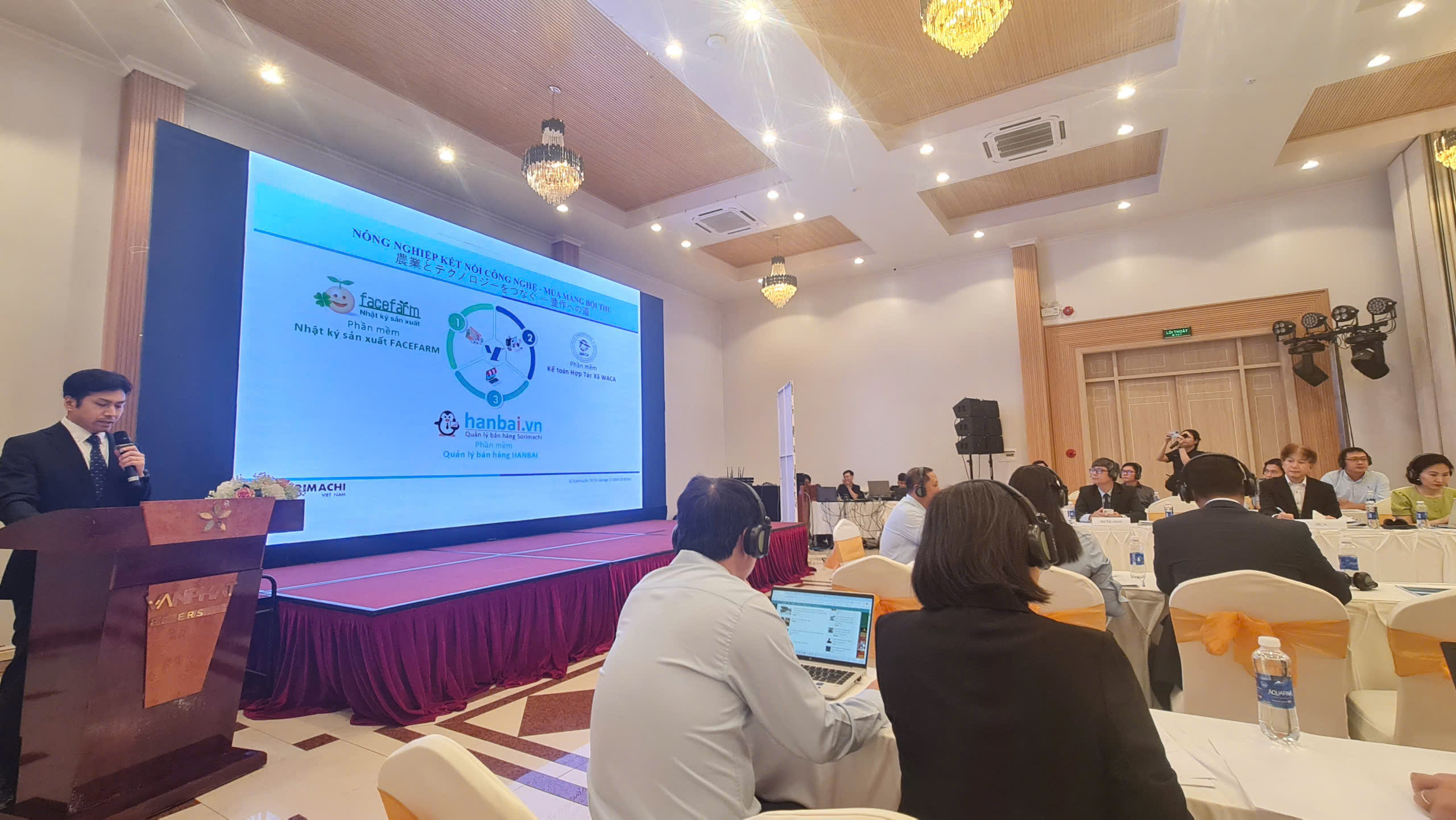 At the conference, Mr. Tsukahara Hiroyuki, representative of Sorimachi Vietnam, introduced the project “High-Quality, Sustainable, and Low-Carbon Rice Value Chain,” which is being implemented in several provinces across the Mekong Delta. The project integrates three software platforms—Hanbai, FaceFarm, and WACA—to digitalize the entire value chain from production to sales, thereby improving operational efficiency and transparency. He also shared plans to cooperate with the Ministry of Agriculture and Environment to develop a nationwide shared digital platform, scheduled to be rolled out starting in 2026.